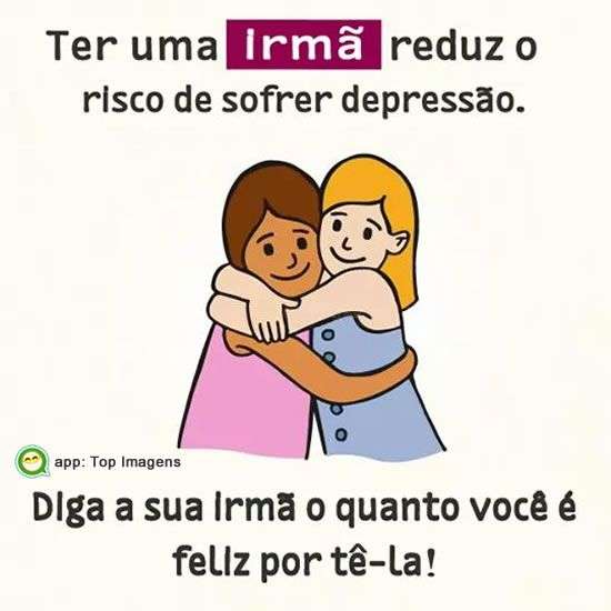 Ter uma irmã reduz o risco de sofrer depressão. Diga a sua irmã o quanto você é feliz por tê-la!