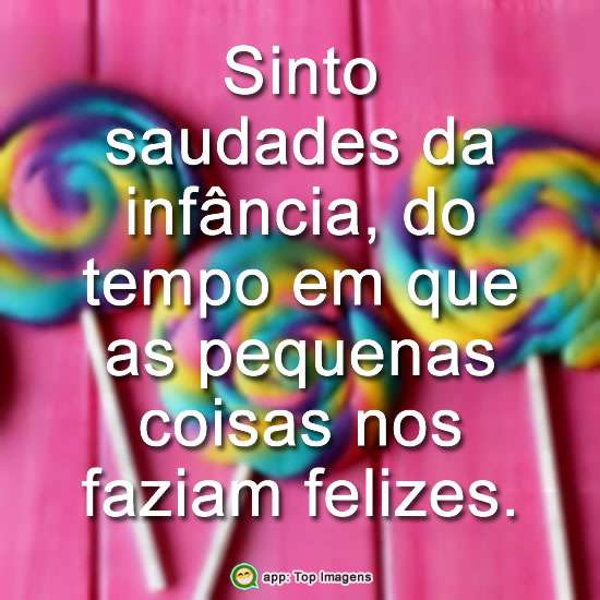 Sinto saudades da infância, do tempo em que as pequenas coisas nos faziam felizes.