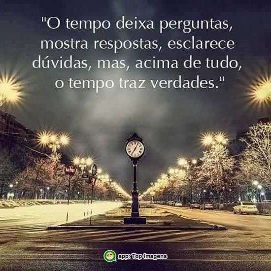 O tempo deixa perguntas, mostra respostas, esclarece dúvidas, mas, acima de tudo, o tempo traz verdades.