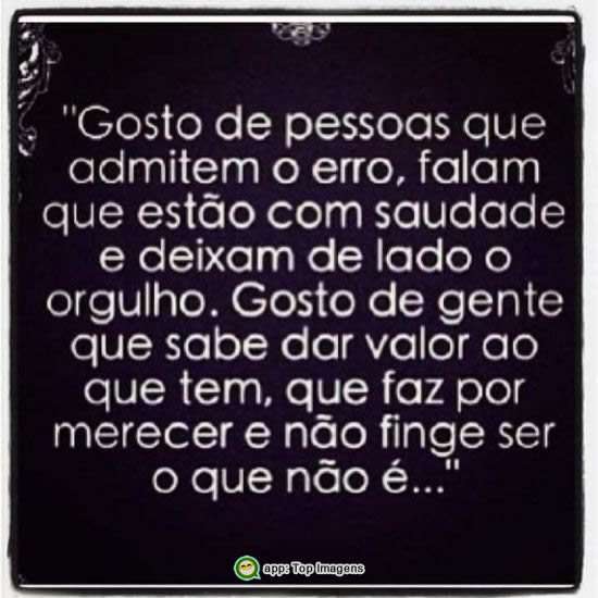 Gosto de pessoas que admitem o erro, falam que estão com saudade e deixam de lado o orgulho.