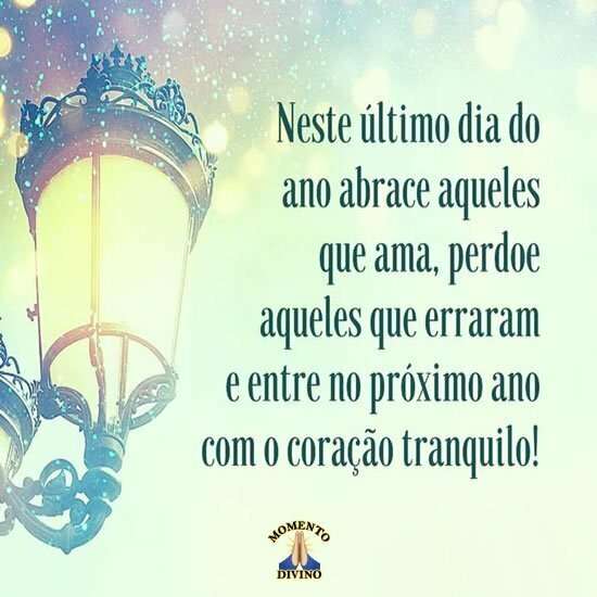 Neste último dia do ano abrace aqueles que ama, perdoe aqueles que erraram e entre no próximo ano com o coração tranquilo!