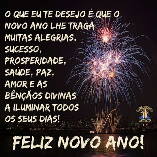 O que eu te desejo é que o Novo Ano lhe traga muitas alegrias, sucesso, prosperidade, saúde, paz, amor e as Bênçãos Divinas a iluminar todos os seus dias!