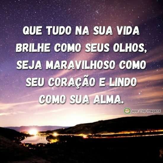 Que tudo na sua vida brilhe como seus olhos, seja maravilhoso como seu coração e lindo como sua alma.