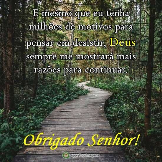 E mesmo que eu tenha milhões de motivos para pensar em desistir, Deus sempre me mostrará mais razões para continuar.