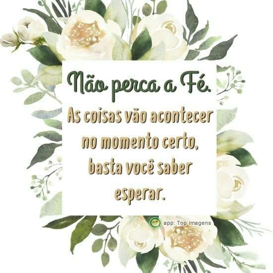 Não perca a Fé. As coisas vão acontecer no momento certo, basta você saber esperar.