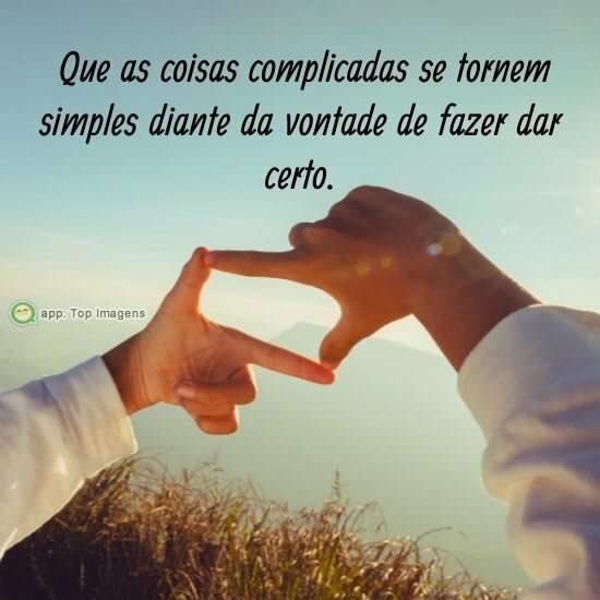 Que as coisas complicadas se tornem simples diante da vontade de fazer dar certo.