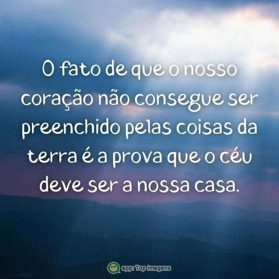 O fato de que o nosso coração não consegue ser preenchido pelas coisas da terra é a prova que o céu deve ser a nossa casa.