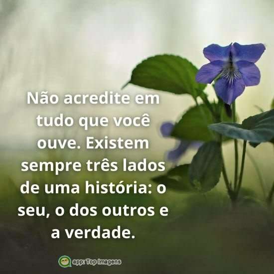 Não acredite em tudo que você ouve. Existem sempre três lados de uma história: o seu, o dos outros e a verdade.