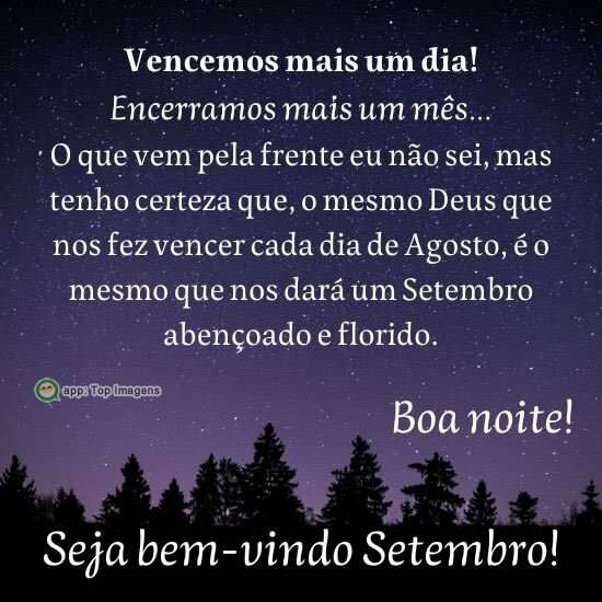 O que vem pela frente eu não sei, mas tenho certeza que, o mesmo Deus que nos fez vencer cada dia de Agosto, é o mesmo que nos dará um Setembro abençoado e florido.