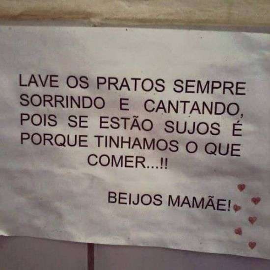 Lave os pratos sempre sorrindo e cantando, pois se estão sujos é porque tínhamos o que comer...!