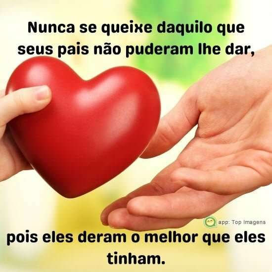 Nunca se queixe daquilo que seus pais não puderam lhe dar, pois eles deram o melhor que eles tinham.
