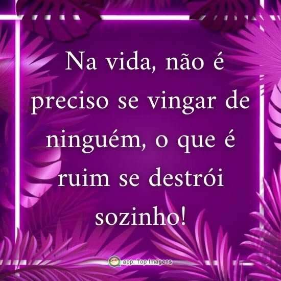 Na vida, não é preciso se vingar de ninguém, o que é ruim se destrói sozinho!