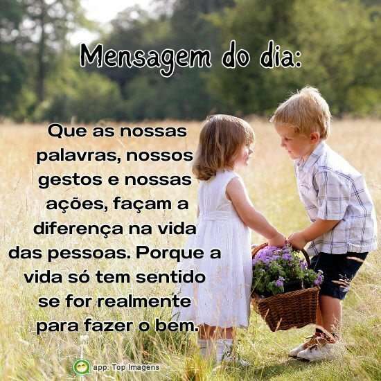 Que as nossas palavras, nossos gestos e nossas ações, façam a diferença na vida das pessoas. Porque a vida só tem sentido se for realmente para fazer o bem.