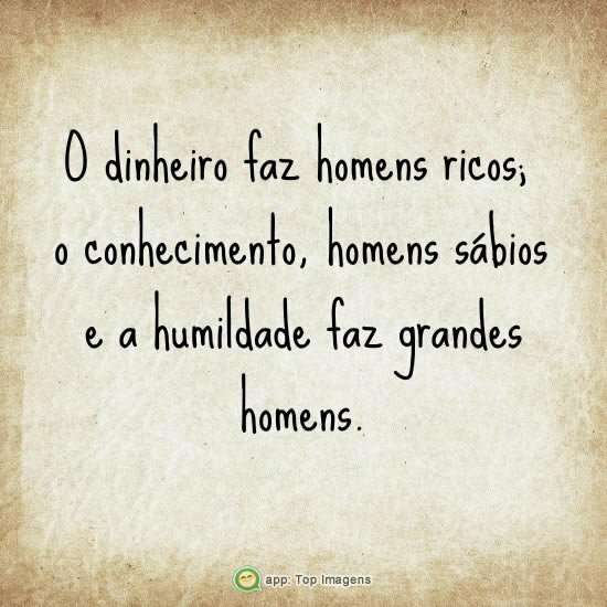 O dinheiro faz homens ricos; o conhecimento, homens sábios e a humildade faz grandes homens.