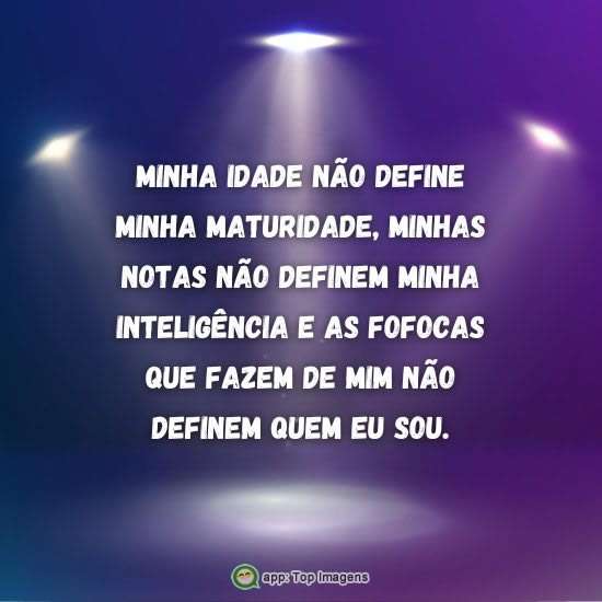 Minha idade não define minha maturidade, minhas notas não definem minha inteligência e as fofocas que fazem de mim não definem quem eu sou.