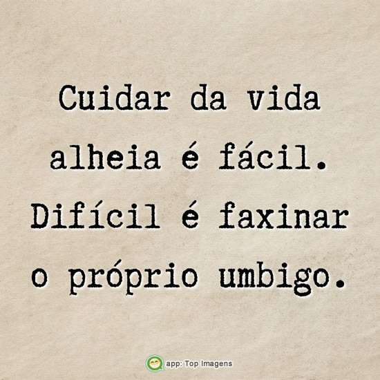 Cuidar da vida alheia é fácil. Difícil é faxinar o próprio umbigo.