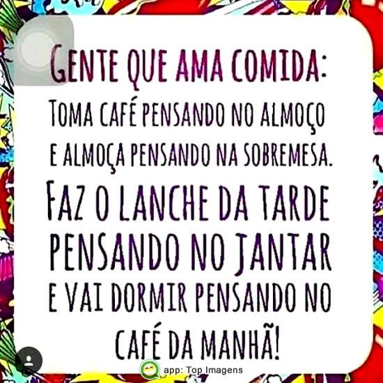 Faz o lanche da tarde pensando no jantar e vai dormir pensando no café da manhã!