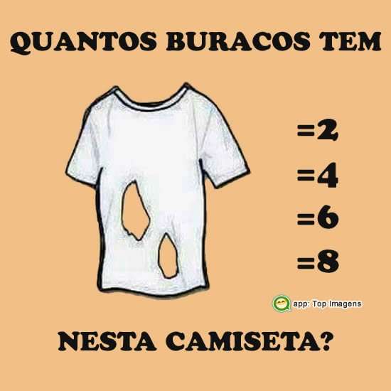 Veja a imagem e diga quantos buracos tem na camiseta?