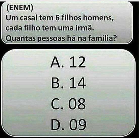 Um casal tem 6 filhos homens, cada filho tem uma irmã. Quantas pessoas há na família?
