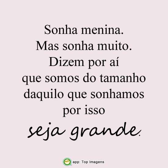 Sonha menina. Mas sonha muito.