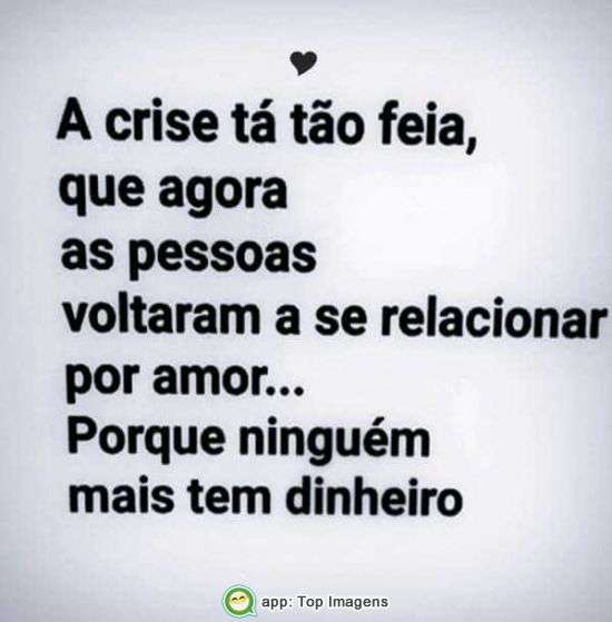 A crise tá tão feia, que agora as pessoas voltaram a se relacionar por amor...