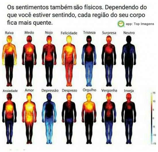 Sentimentos também são físicos. Dependendo do que você estiver sentindo, cada região do seu corpo fica mais quente.