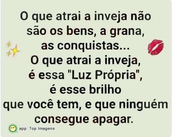 O que atrai a inveja, é essa "Luz Própria", é esse brilho que você tem, e que ninguém consegue apagar.