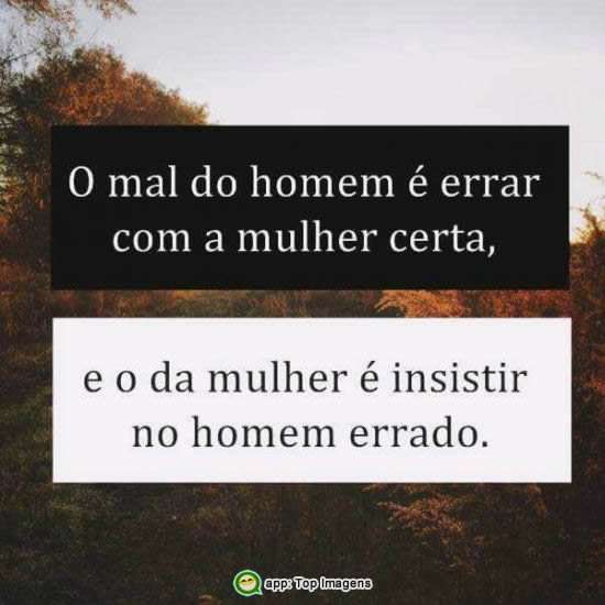 O mal do homem é errar com a mulher certa, e o da mulher é insistir no homem errado.