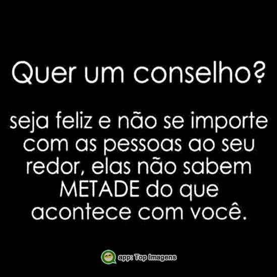 Seja feliz e não se importe com as pessoas ao seu redor, elas não sabem METADE do que acontece com você.