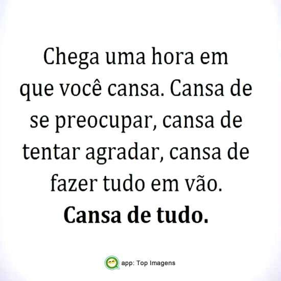 Chega uma hora em que você cansa. Cansa de se preocupar, cansa de tentar agradar, cansa de fazer tudo em vão.