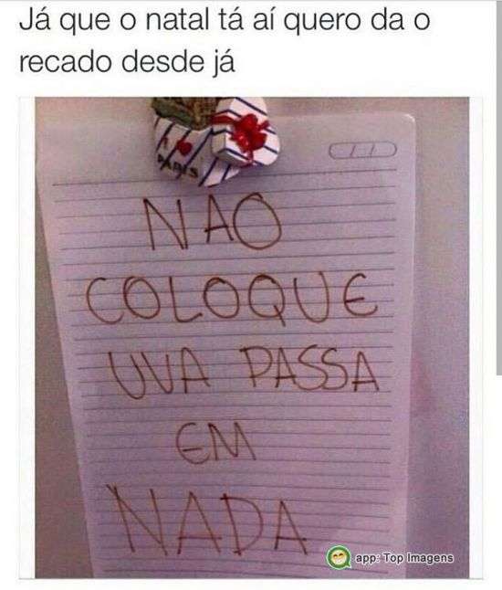 Já que o natal está aí quero da o recado desde já, não coloque uva passa em nada.