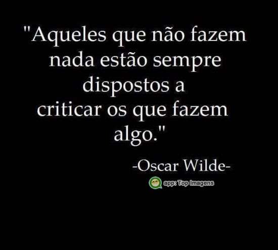 Aqueles que não fazem nada estão sempre dispostos a criticar os que fazem algo. (Oscar Wilde)