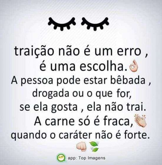 A pessoa pode estar bêbada, drogada ou o que for, se ela gosta, ela não trai.