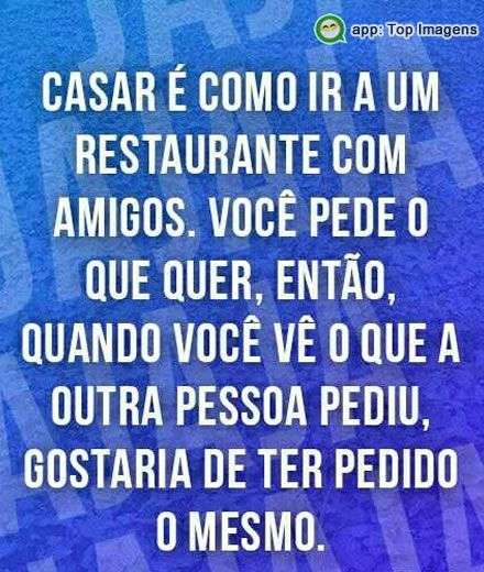 Casar é como ir a um restaurante com amigos. Você pede o que quer, então, quando você vê o que a outra pessoa pediu, gostaria de ter pedido o mesmo.
