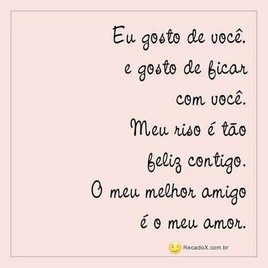 Eu gosto de você, e gosto de ficar com você. Meu riso é tão feliz contigo. O meu melhor amigo é o meu amor.