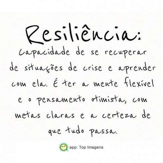 É ter a mente flexível e o pensamento otimista, com metas claras e a certeza de que tudo passa.