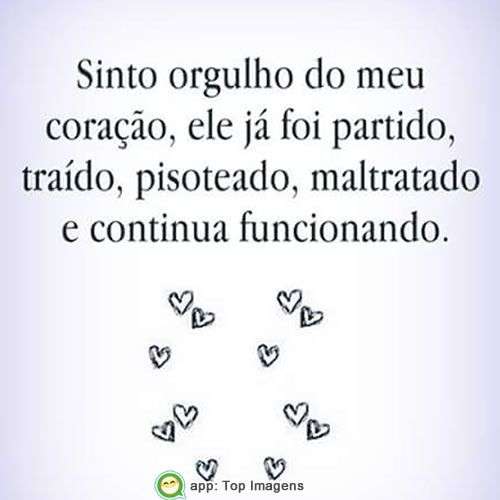Sinto orgulho do meu coração, ele já foi partido, traído, pisoteado, maltratado e continua funcionando.