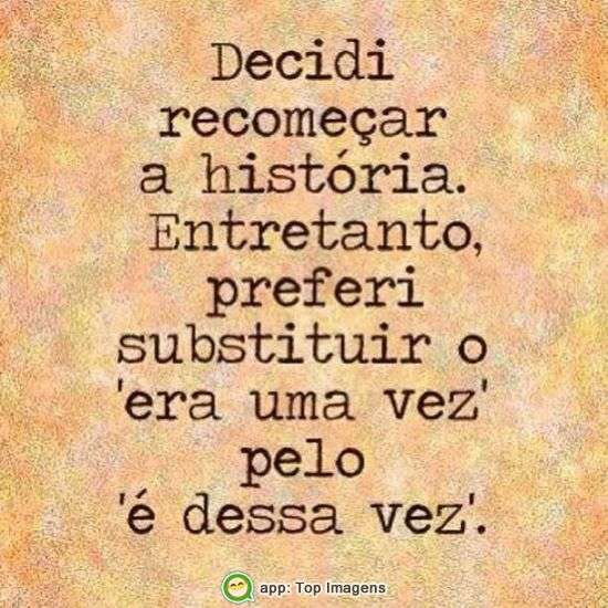 Decido recomeçar a história. Entretanto, preferi substitui o 'era uma vez' pelo 'é dessa vez'.
