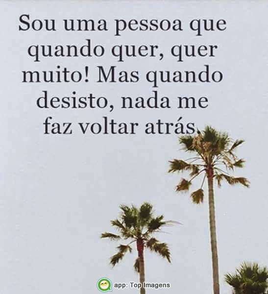 Sou uma pessoa que quando quer, quer muito! Mas quando desisto, nada me faz voltar atrás.