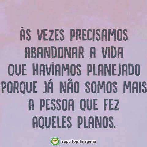 Ás vezes precisamos abandonar a vida que havíamos planejado porque já não somos mais a pessoa que fez aqueles planos.