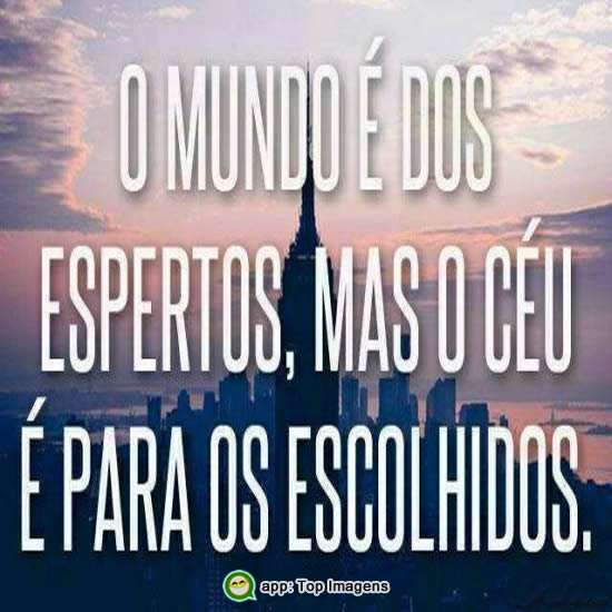 O mundo é dos espertos, mas o céu é para os escolhidos.