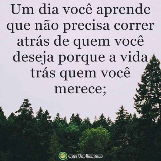 Um dia você aprende que não precisa correr atrás de quem você deseja porque a vida trás quem você merece.