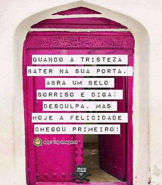 Quando a tristeza bater na sua porta, abra um belo sorriso e diga: Desculpa, mas hoje a felicidade chegou primeiro!