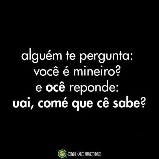Alguém te pergunta: Você é mineiro? e ocê responde: Uai, comé que cê sabe?