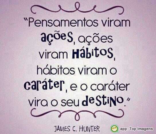 Pensamentos viram ações, ações viram hábitos, hábitos viram o caráter, e o caráter vira o seu destino.