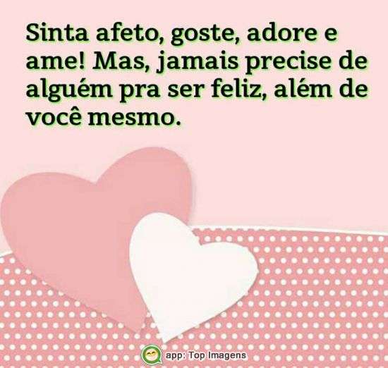 Sinta afeto, goste, adore e ame! Mas, jamais precise de alguém pra ser feliz, além de você mesmo.
