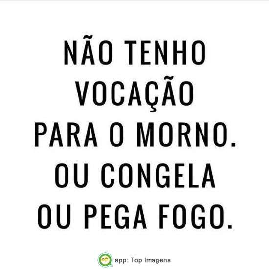 Não tenho vocação para o morno. Ou congela ou pega fogo.