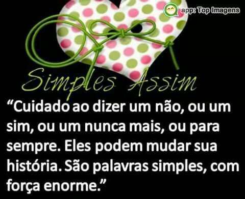 Cuidado ao dizer um não, ou um sim, ou um nunca mais, ou para sempre. Eles podem mudar sua história. São palavras simples, com força enorme.