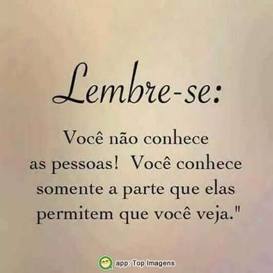 Você não conhece as pessoas! Você conhece somente a parte que elas permitem que você veja.