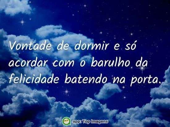 Vontade de dormir e só acordar com o barulho da felicidade batendo na porta.